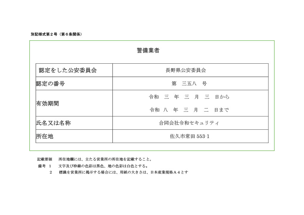 称号 合同会社令和セキュリティ